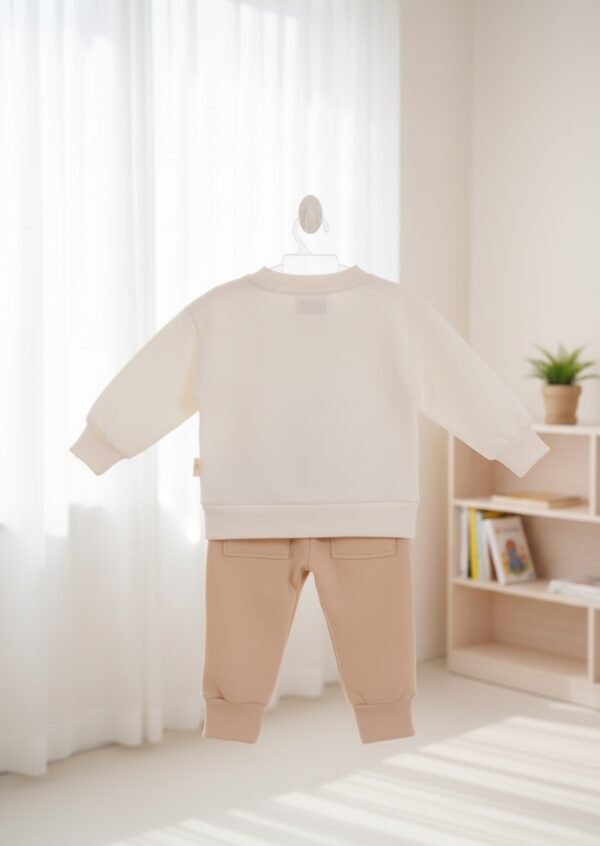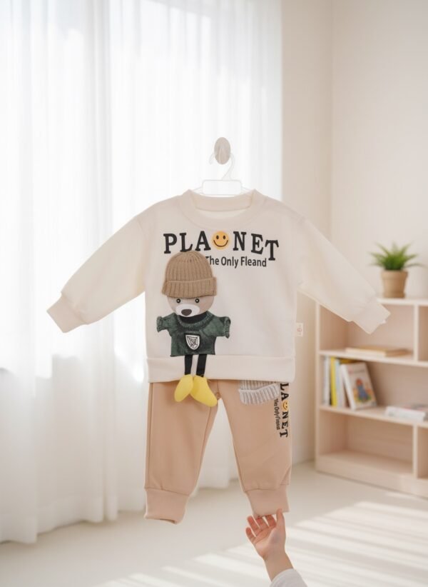 PLANET Kids' Bear Applique Sweatshirt and Jogger Set – Beige & Tan Co-ord