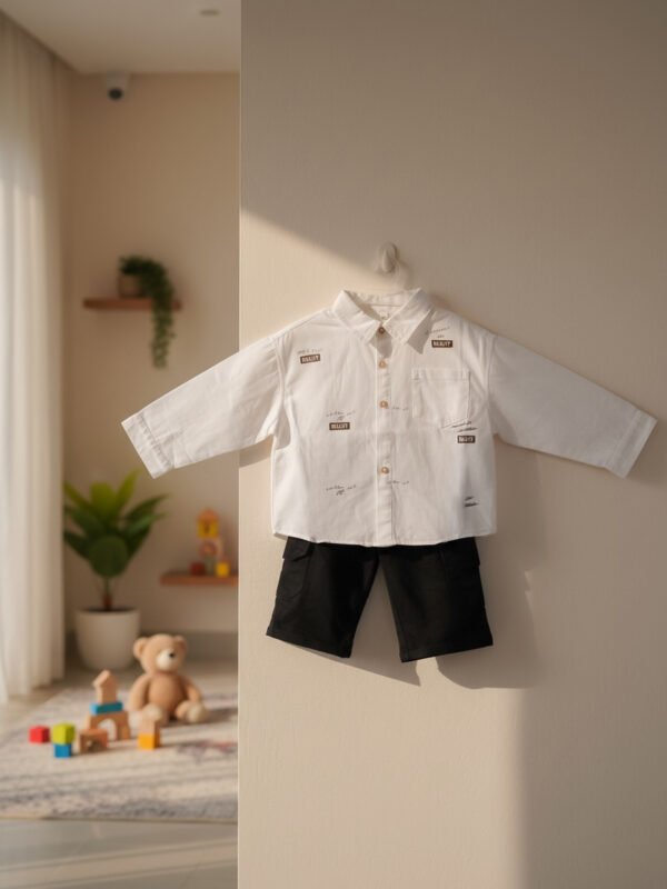 Upgrade your little boy’s style with this trendy 3-piece outfit set. Featuring a stylish brown checked jacket, a soft full-sleeve inner T-shirt, and comfortable solid pants, this set is perfect for a smart and modern look. Designed for comfort and style, it’s ideal for outings, parties, and everyday wear.