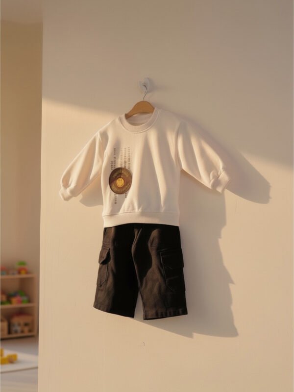 Equip your young explorer with this stylish and functional two-piece utility set. This ensemble features a premium rust red (terracotta) long-sleeved shirt with a rugged, military-inspired aesthetic. The shirt is detailed with dual functional chest pockets and bold typography featuring “DAZZLIN” and “MOVEMENT” graphics, giving it a modern streetwear edge.
