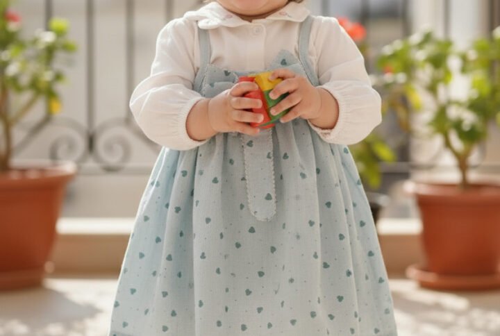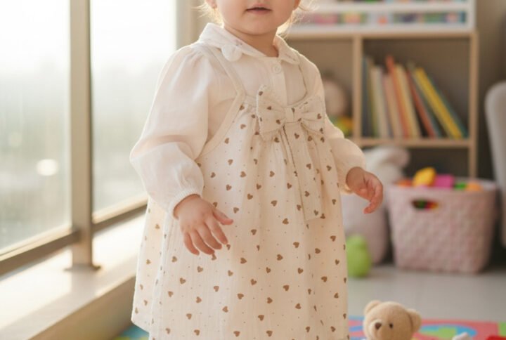 This adorable two-piece outfit includes a soft, long-sleeve sweatshirt and matching jogger pants, both in a charming blush pink shade. Made from cozy cotton-blend fabric, the sweatshirt features a ribbed neckline, cuffs, and hem for a snug fit, while the pants include an elastic waistband and ankle cuffs for comfort and ease of movement. Both pieces are adorned with a cute embroidered teddy bear patch on the chest and thigh, adding a playful and sweet touch to the overall look.