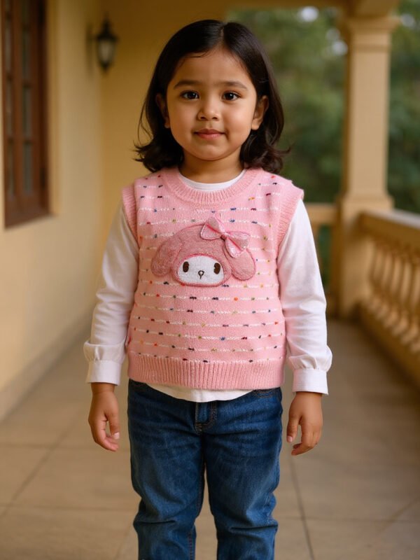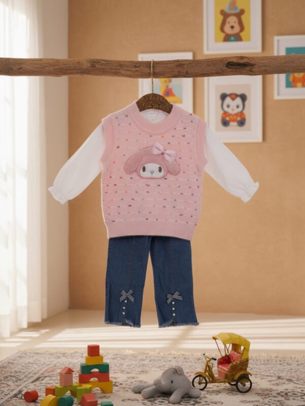 Baby Girls Pink Cartoon Printed Sweatshirt with Denim Pants Set (3-Piece Outfit