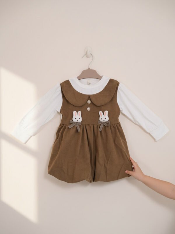 Baby Girls' Corduroy Pinafore Dress with Long Sleeve Top & Rabbit Appliques