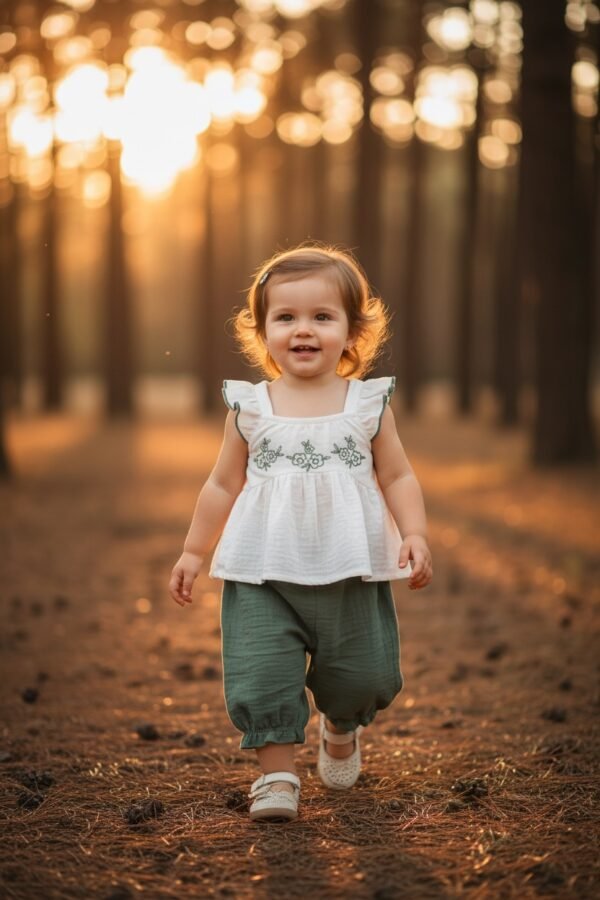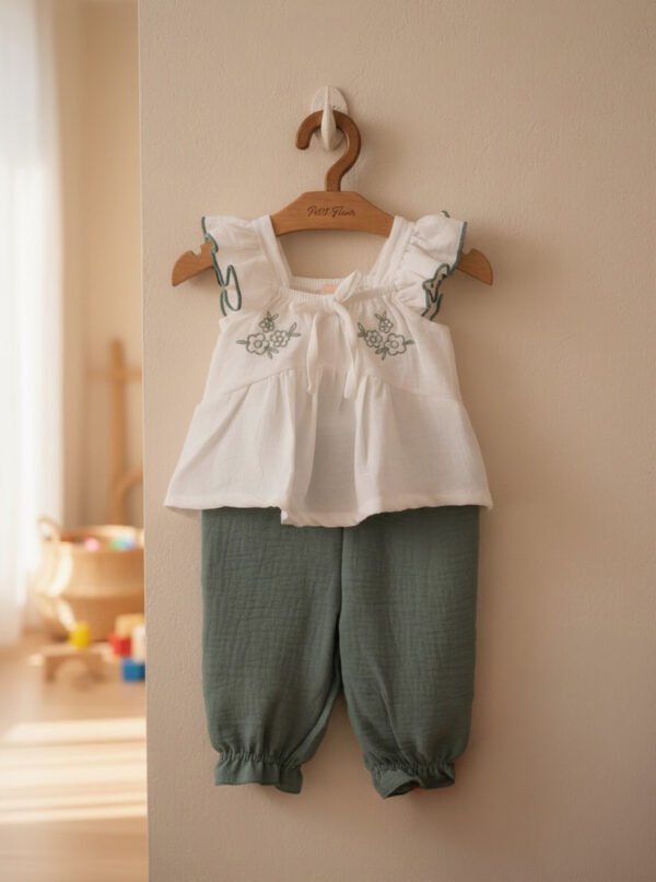 Baby Girls' Embroidered Muslin Peplum Top & Sage Green Bloomers Set