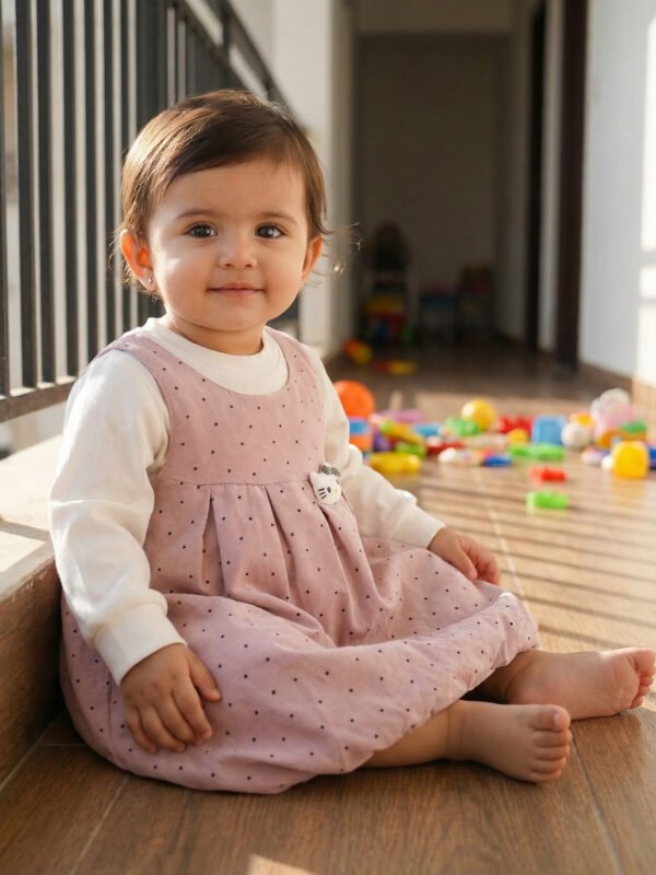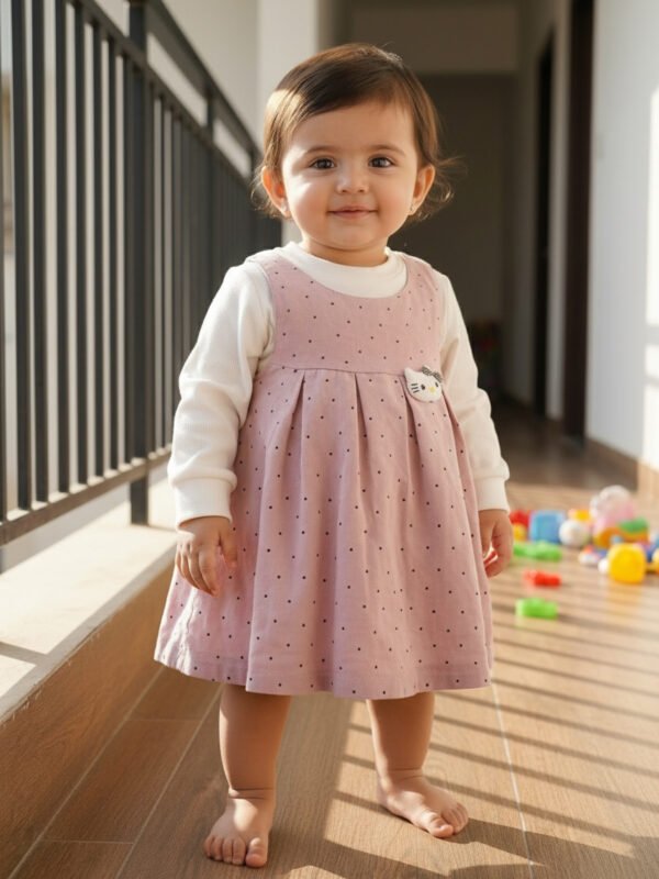 Baby Girls' Pink Polka Dot Pinafore Dress with Long Sleeve