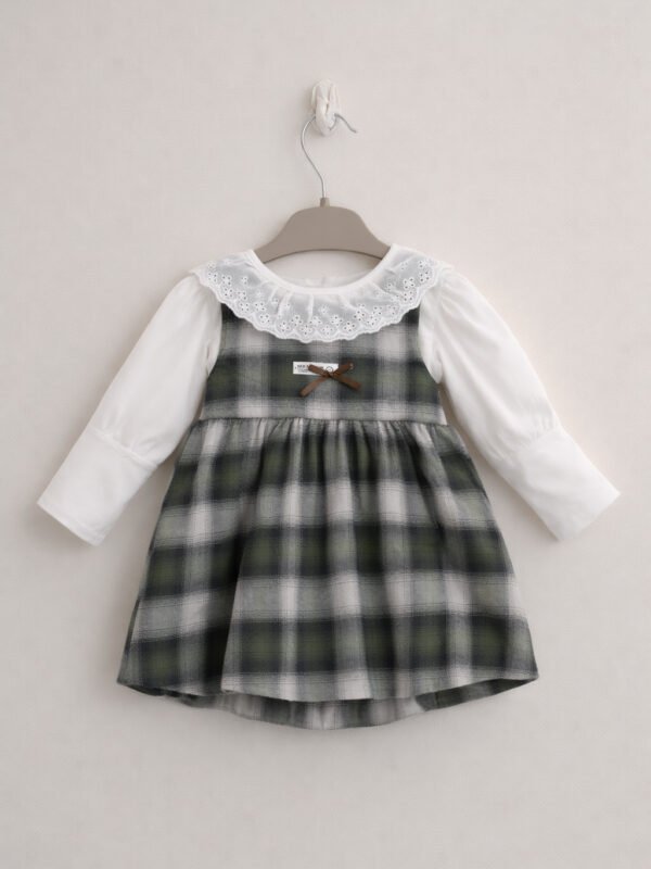 Baby Girls' Plaid Pinafore Dress with Embroidered Lace Collar